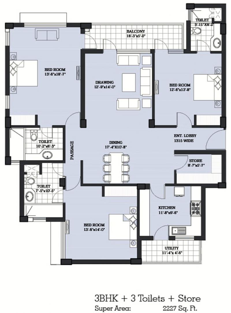 - Super Area: 2227 Sqft